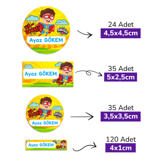 214 Adet Süper Kahraman Tasarımlı Kişiye Özel İsimli Okul EtiketiNormal fiyat 249,99TLNormal fiyatBirim fiyat /