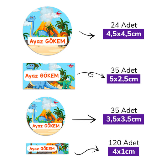 214 Adet Dinozor Tasarımlı Kişiye Özel İsimli Okul EtiketiNormal fiyat 249,99TLNormal fiyatBirim fiyat /