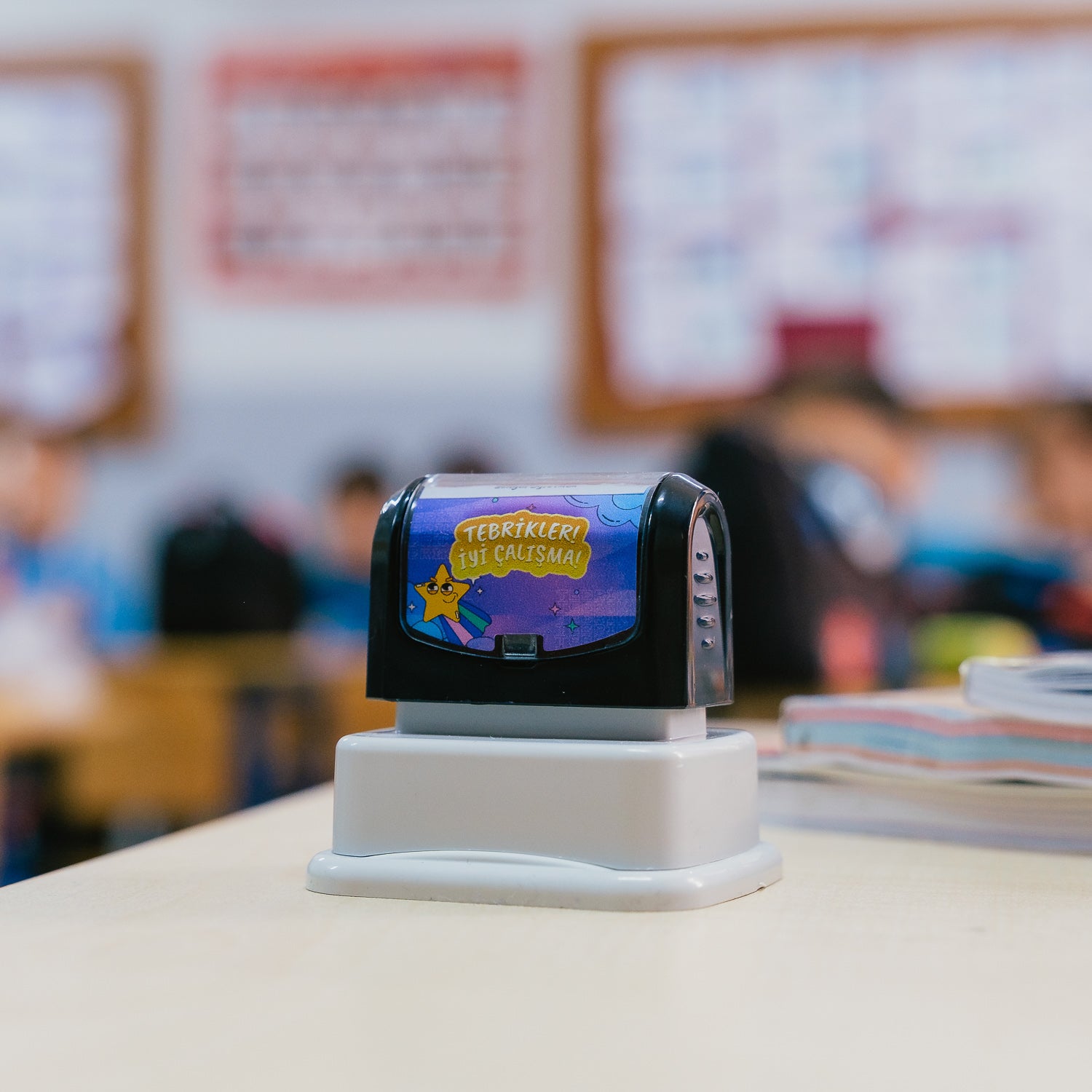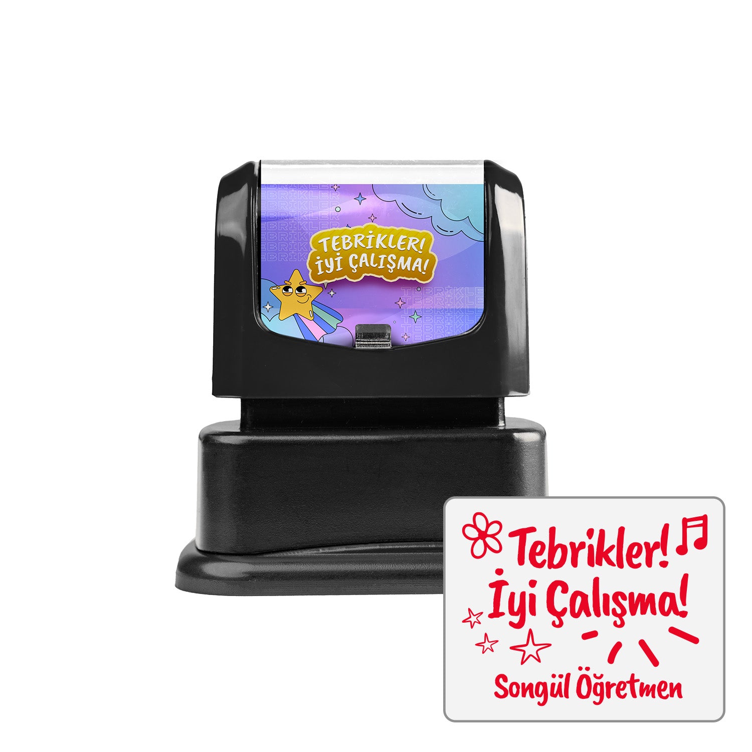 Başarıyı kutlamak için özel bir dokunuş! Bu “Tebrikler, İyi Çalışma” öğretmen kaşesi öğretmenin adıyla kişiselleştirilir. Öğrencilerin derslere olan ilgisini artırmak ve onları motive etmek için mükemmel bir seçimdir. Eğlenceli tasarımı ve dayanıklı yapısıyla sınıfta sıkça kullanılabilir.